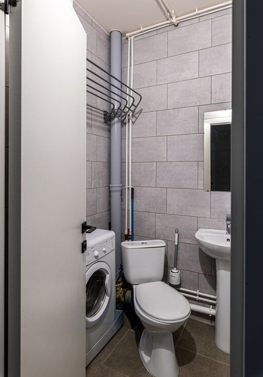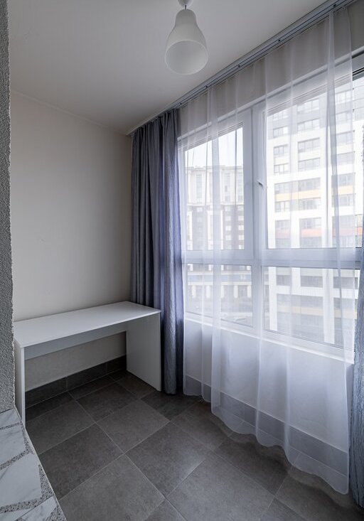 Квартира оборудована всем необходимым для проживания: есть места для хранения, хорошая мебель (диван в гостиной и кровать в спальне), теплый балкон, который можно использовать как кабинет.