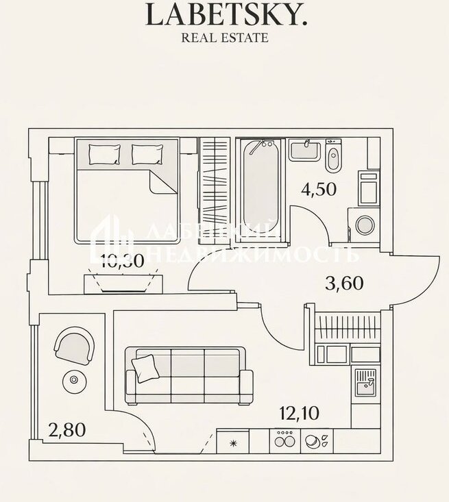 1-комнатная квартира: Санкт-Петербург, проспект Авиаконструкторов, 54 (41.8 м²)