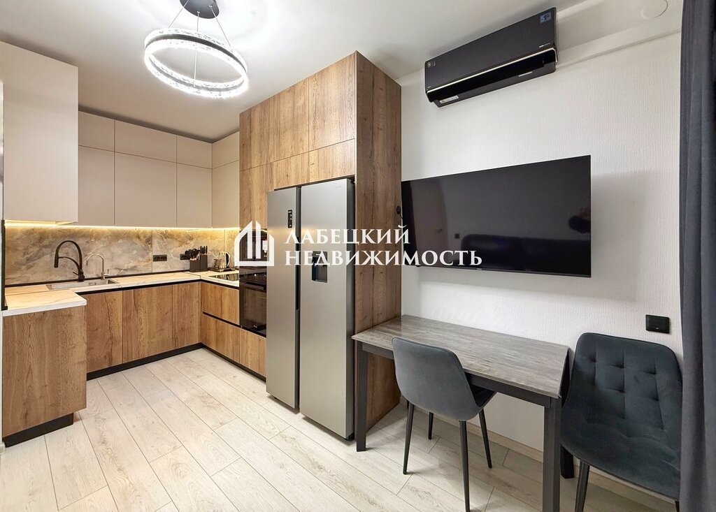 - ДЕЙСТВИТЕЛЬНО комфортная планировка: ПРОСТОРНАЯ комната, в которой расположен диван, большой телевизор, кухонный стол. И отдельное внимание хотелось бы уделить кухне. Она укомплектована всей необходимой техникой, установлена посудомойка, духовой шкаф, варочная поверхность, холодильник.