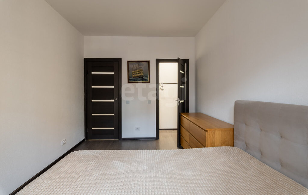 Квартира после ремонта. Большая удобная кровать, гардеробная, просторный балкон. Вид на закрытый двор с ландшафтным дизайном.