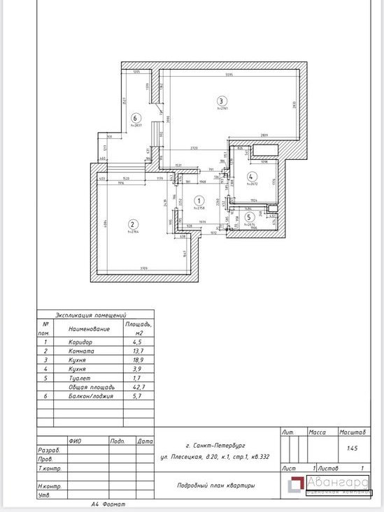 1-комнатная квартира: Санкт-Петербург, Плесецкая улица, 20к1 (42.7 м²)