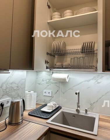 Квартира оснащена всей необходимой техникой и мебелью, есть бытовые принадлежности для удобства арендаторов. Зона кухни оборудована полноценной кухонной мебелью, в том числе имеется посудомоечная машина. Кроме этого, установлена общедомовая система кондиционирования, которая позволяет настраивать комфортную температуру внутри квартиры в любое время года. Предусмотрено 4 спальных места (двуспальная кровать и раскладной диван).