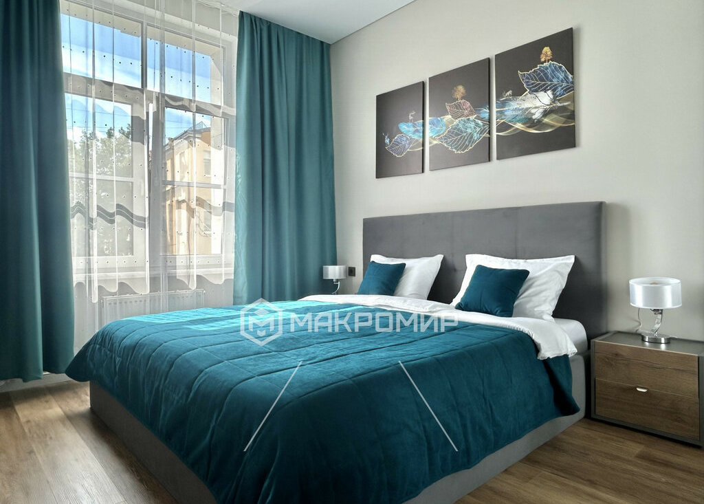 Комплекс бизнес-класса, квартира с современной отделкой и мебелью для комфортного размещения пары или одного человека.