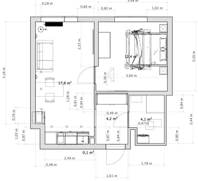 — кухня-гостиная с раскладным диваном