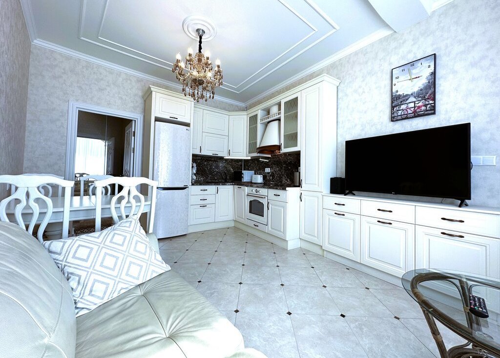 -- встроенная кухня со встроенной бытовой техникой (вкл. посудомоечную машину);