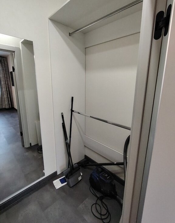 В квартире сделан качественный ремонт, есть вся необходимая мебель и бытовая техника, просторная гардеробная, застекленный балкон.