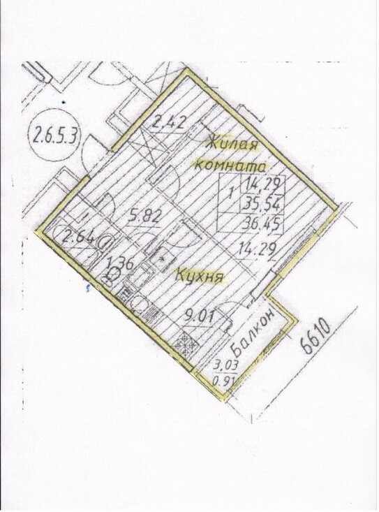 1-комнатная квартира: Санкт-Петербург, проспект Авиаконструкторов, 54 (35.6 м²)