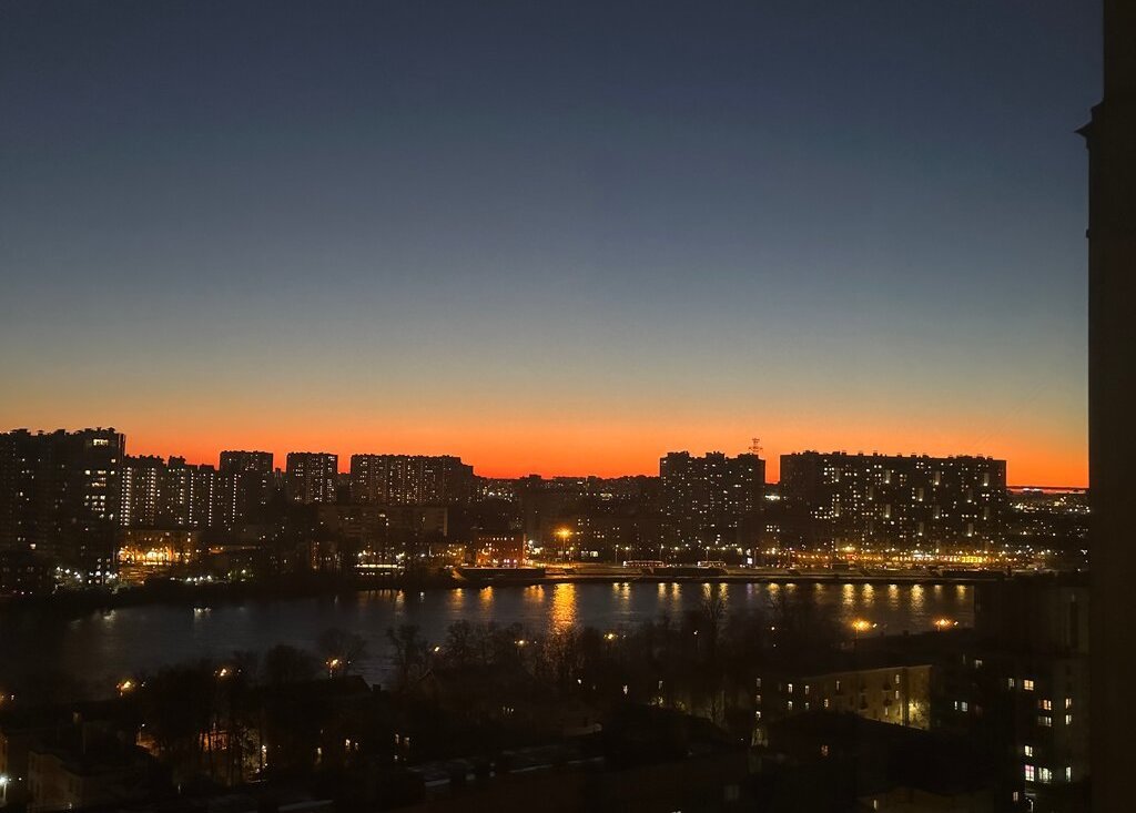 Прекрасный вид на Неву и Вантовый мост открывается с балкона. Благодаря окнам в пол Невой можно любоваться сидя за столом и лежа в кровати. Зимой видны рассветы и закаты.