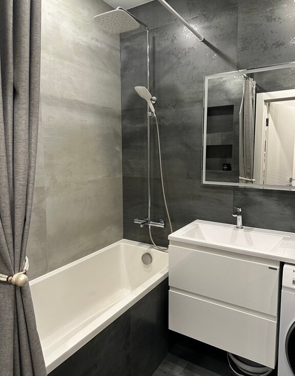 - просторный санузел с теплыми полами. Установлены проточный водонагреватель для бесперебойного горячего водоснабжения, система от протечек, гигиенический душ.