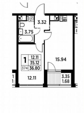 1-комнатная квартира: Санкт-Петербург, Верхне-Каменская улица, 7к2 (35.8 м²)