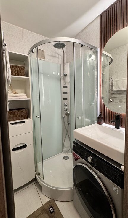 - полностью обновлена сантехника (новая раковина и смеситель в ванной и кухне, на кухне установлен смеситель 2 в 1 (с фильтром для воды))