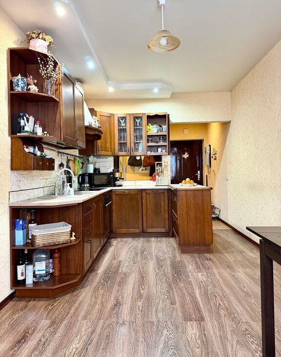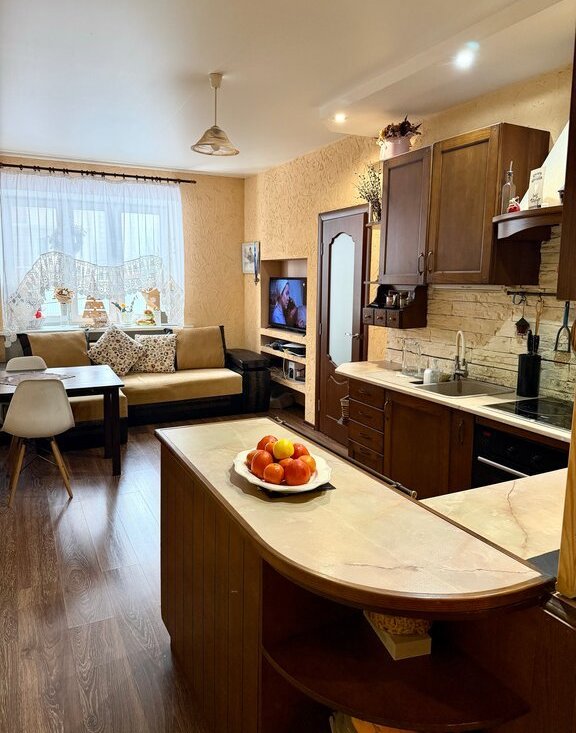 • уютная кухня гостиная — идеальное пространство для семейных ужинов и приёма гостей;