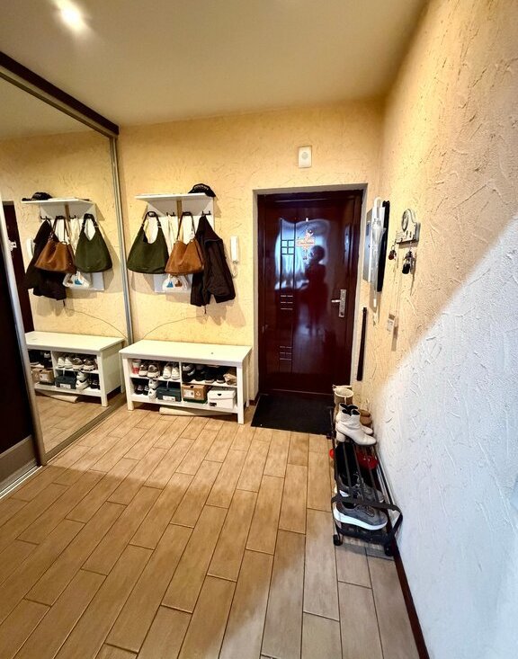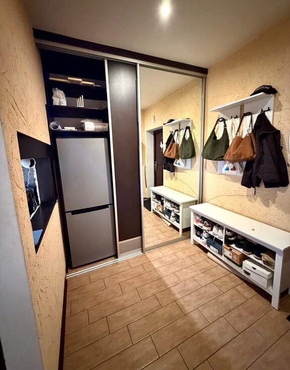 • просторная прихожая с большим шкафом купе — достаточно места для хранения;