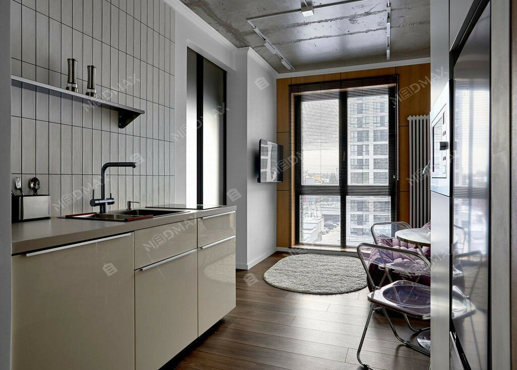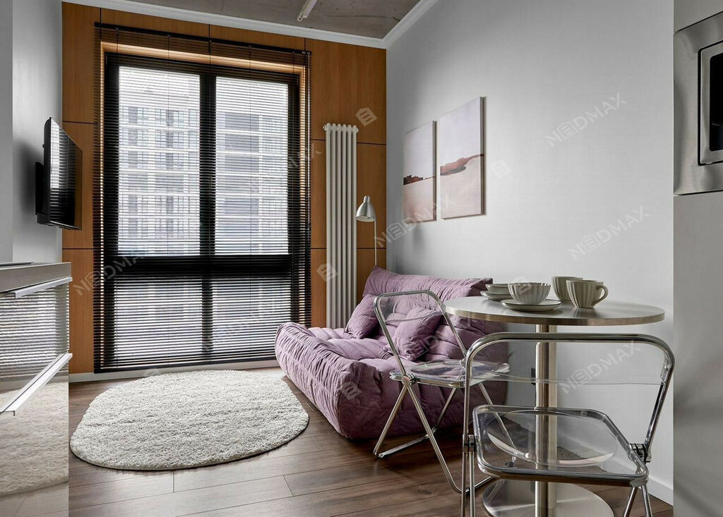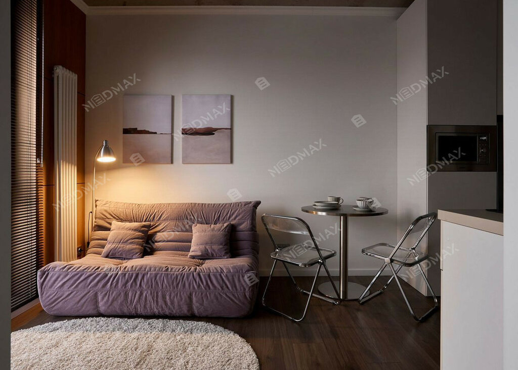 Несмотря на компактные размеры, квартира имеет просторную кухню-гостиную и отдельную спальню с лоджией.