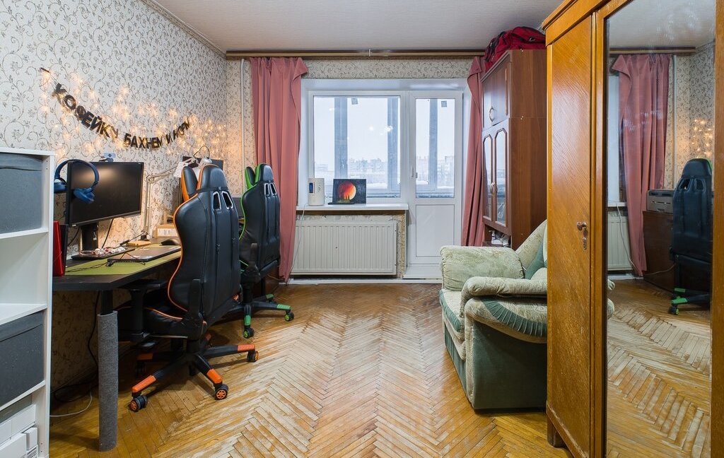 Квартира находится на комфортном 9 этаже, окна выходят во двор на зеленую сторону, что обеспечивает прекрасный вид из окна летом и зимой. Квартира требует косметического ремонта, прекрасная возможность для нового собственника выбрать отделочные материалы и организовать пространство по своему усмотрению. По всей квартире выполнены работы по установке новых стеклопакетов и остеклению лоджии.