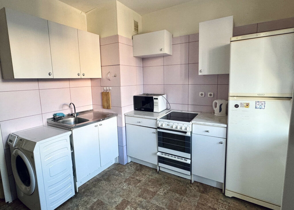 Квартира с мебелью и техникой ( стиральная машина, холодильник, эл плита, свч) и необходимым оборудованием для проживания.