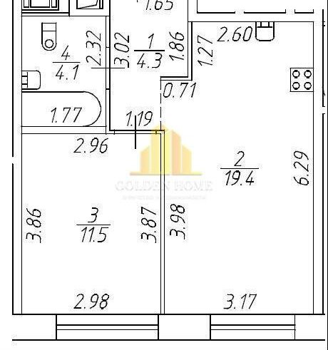 1-комнатная квартира: Санкт-Петербург, проспект Крузенштерна, 13 (39.5 м²)
