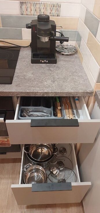 Посуда: новый набор кастрюль, сковородок.