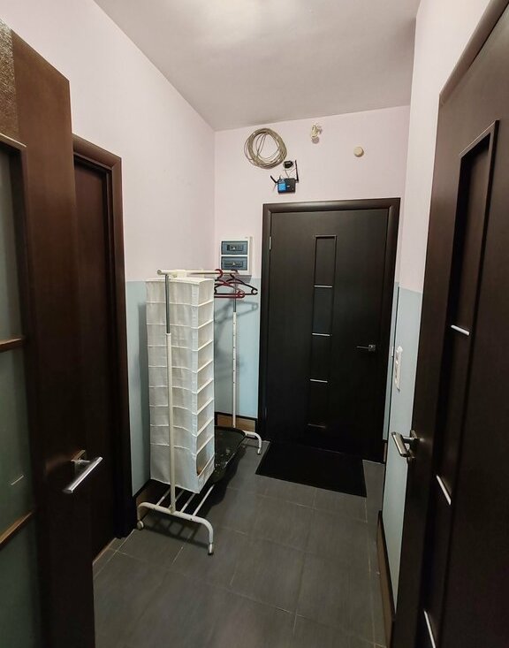 Всё для жизни есть: двуспальная кровать, раскладной диван, рабочий стол, большой шкаф-купе. Вся необходимая техника (индукционная плита, стиральная машина, холодильник, микроволновка). Шторы блэкаут. ПММ нет.