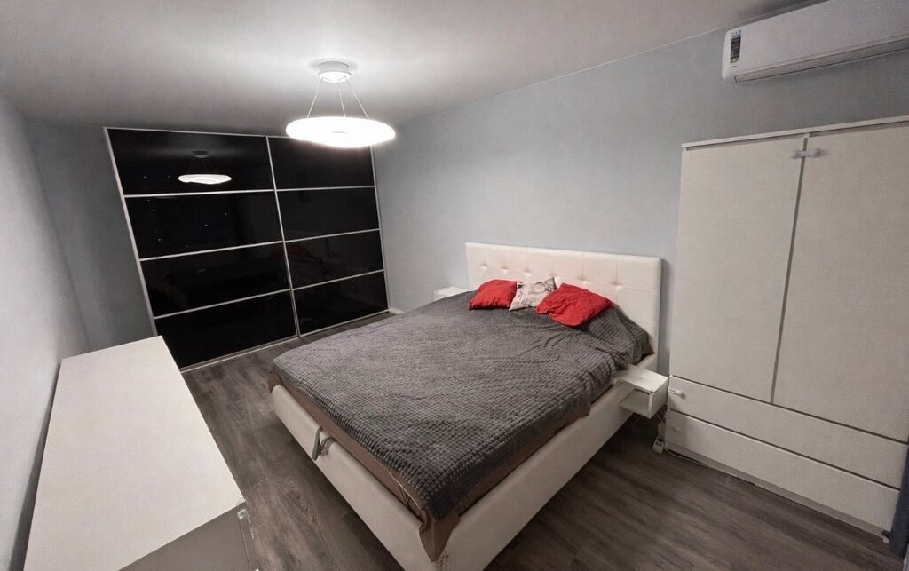 Квартира очень теплая, светлая. В спальне есть большая кровать 180/200 Просторная жилая зона включает огромный шкаф-гардероб и комод для хранения вещей. Есть телевизор с Алисой, а также освещение с пультом очень удобно включать свет голосом (если у вас есть Алиса). Если понадобится можем оставить полочку для игрушек.