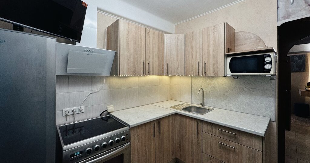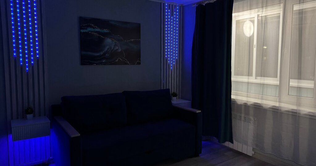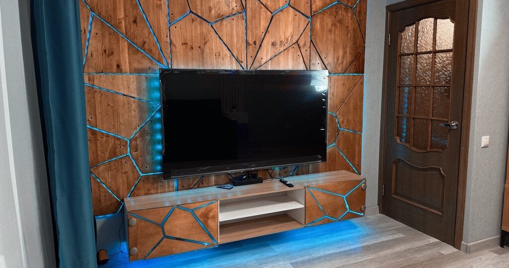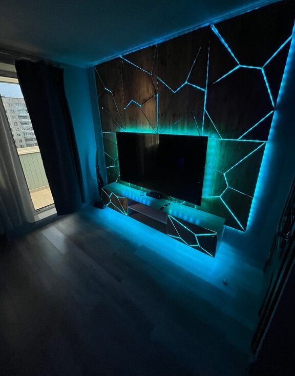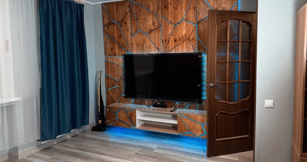 ✔ Остается вся новая техника (большой современный телевизор в комнате, размером 65 дюймов)