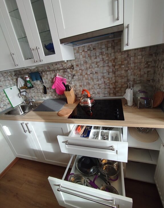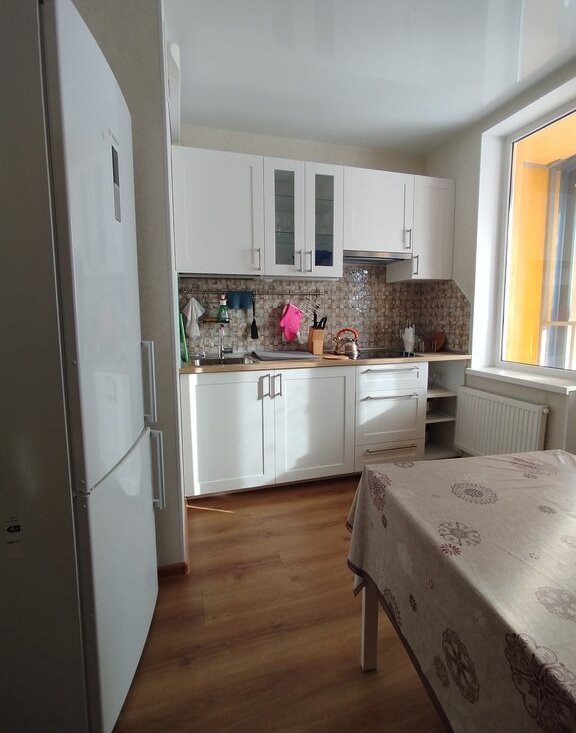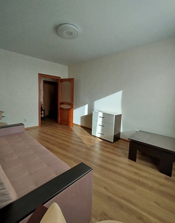 На кухне-гарнитур, варочная поверхность, вытяжка, большой холодильник, посуда, раскладывающийся угловой диван. В комнате двуспальный диван, два небольших кресла, комод, стол-трансформер. Есть сушилка, гладильная доска и утюг. Можно что-то докупить по договоренности. Сдается для 1 человека или пары без детей, животных и вредных привычек.
