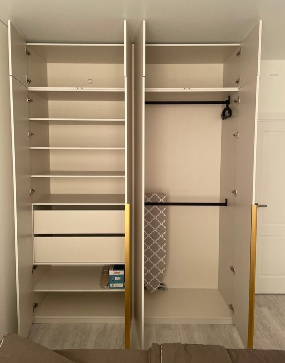 · Мебель: кухня, кровать, шкафы для одежды (в прихожей и спальне), стол и стулья.
