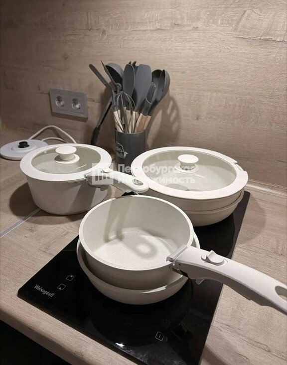 Квартира полностью меблирована и оснащена всей необходимой техникой: современный кухонный гарнитур, варочная панель, холодильник, стол и стильные барные стулья. Для Вашего комфорта предусмотрены двуспальная кровать, уютный диван для отдыха и столик, создающий атмосферу домашнего уюта. В прихожей Вас ждет просторный шкаф, который поможет сохранить порядок и организованность.