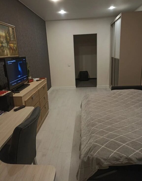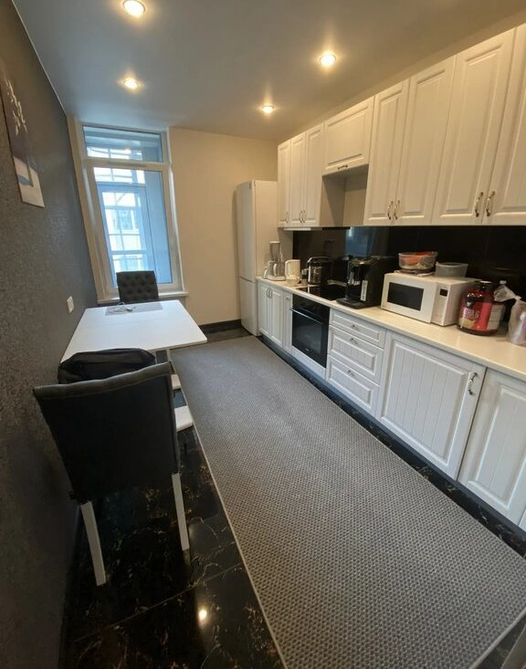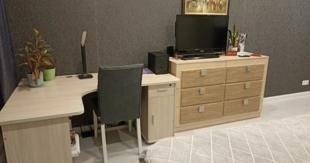 Есть все для проживания, кофе машина, техника, посуда, постельное белье, мебель, Но нет посудомоечной машины и телевизора.