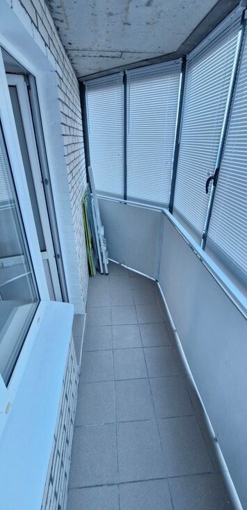 Балкон застеклен ,что позволяет использовать его как дополнительное пространство.