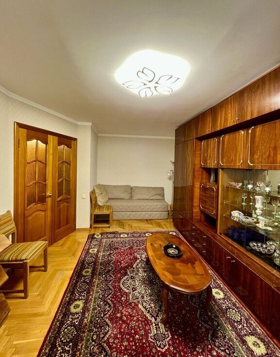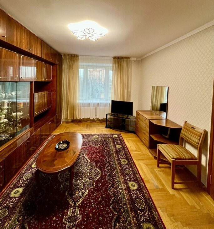 * вся необходимая мебель: раскладной диван, шкаф, кухонный гарнитур, обеденный стол и стулья;