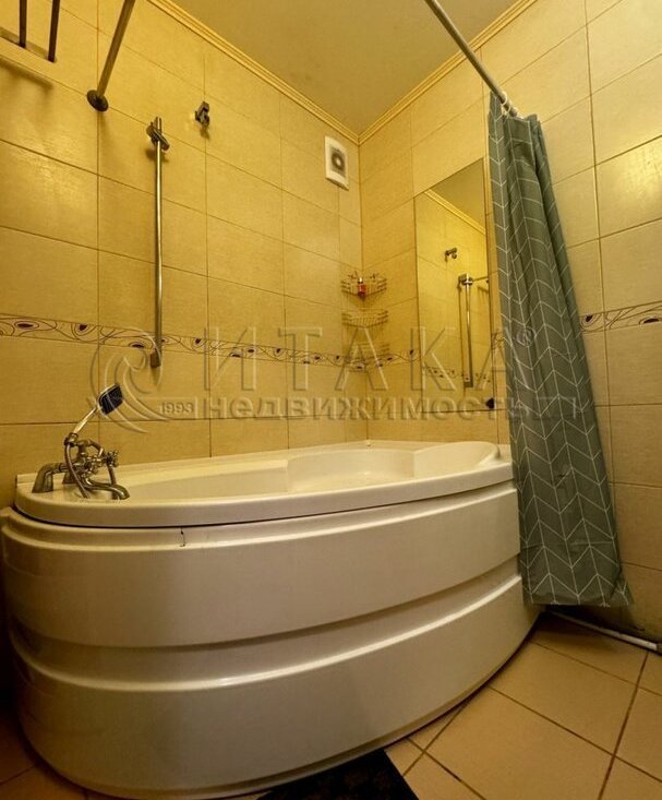 Санузел раздельный, что удобно для семьи: ванная комната с большой угловой ванной, в туалете установлен умывальник.
