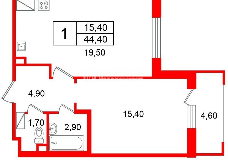 1-комнатная квартира: Санкт-Петербург, проспект Ветеранов, 169к2 (44.4 м²)