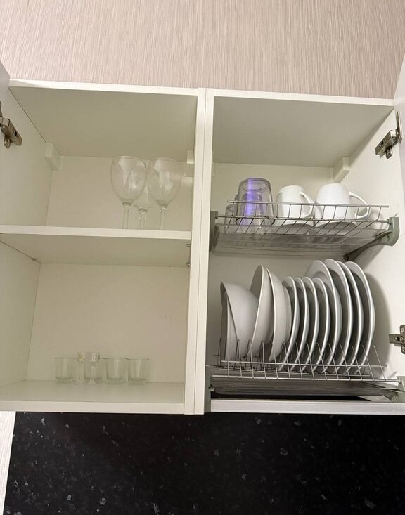 А так же есть утюг, гладильная доска и сушилка для посуды