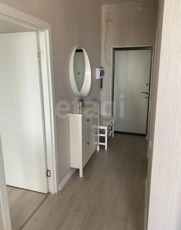 Функциональная прихожая с зеркалом и системой хранения.