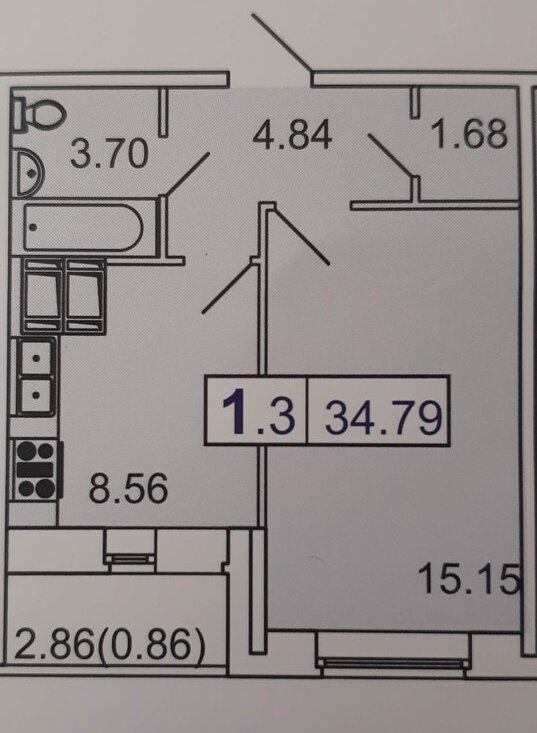1-комнатная квартира: Санкт-Петербург, Пулковское шоссе, 40к3 (34 м²)