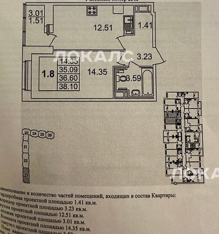 1-комнатная квартира: Санкт-Петербург, Пулковское шоссе, 42к6 (34.8 м²)