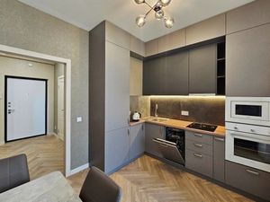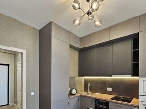 Так же будущим собственникам остаётся кухонный гарнитур со встроенной техникой, холодильник, стиральная машинка.
