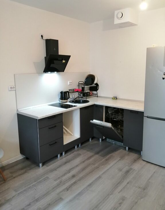 Есть вся необходимая мебель и бытовая техника - электроплита с духовкой, стиральная машина, холодильник, посудомоечная машина, пылесос.