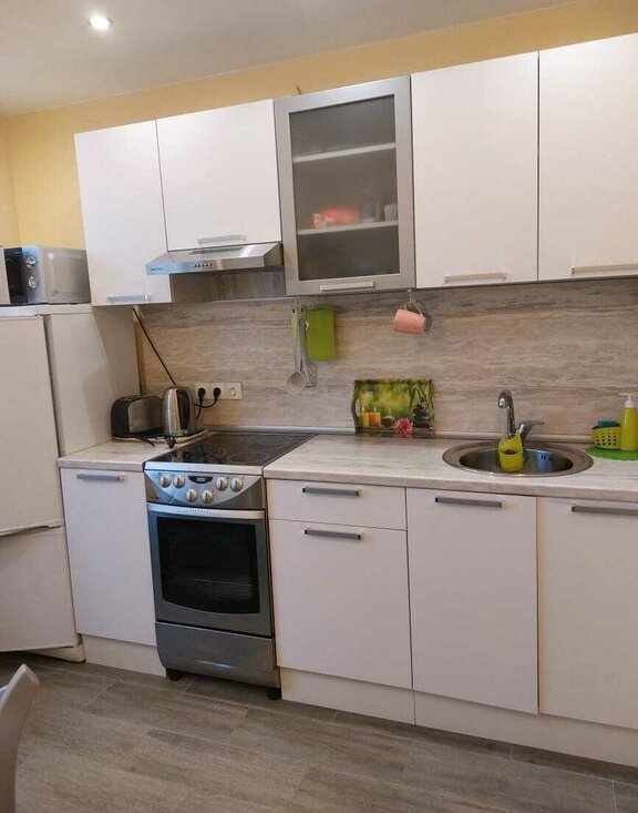 Сдается благоустроенная, стильная квартира в отличном состоянии, евроремонт, современная мебель и техника. Есть все, что нужно для комфортного проживания - встроенная кухня, вытяжка, СВЧ, эл.плита с духовкой, Д/К- "тропикано" с изливом, два дивана, 2х сп.кровать, ортопедический матрас, горка, телевизор, стол-трансформер, шкафы, гардеробная, обувница. Рядом супермаркет, д/сад, школа, бассейн.Для 1-2 человек, без животных.