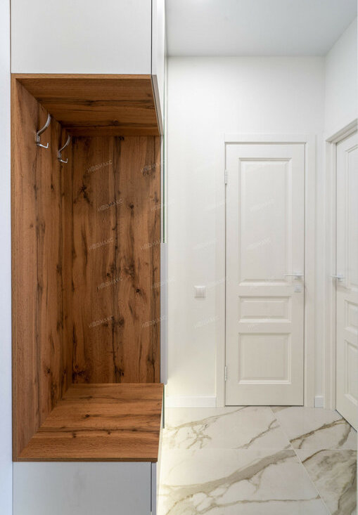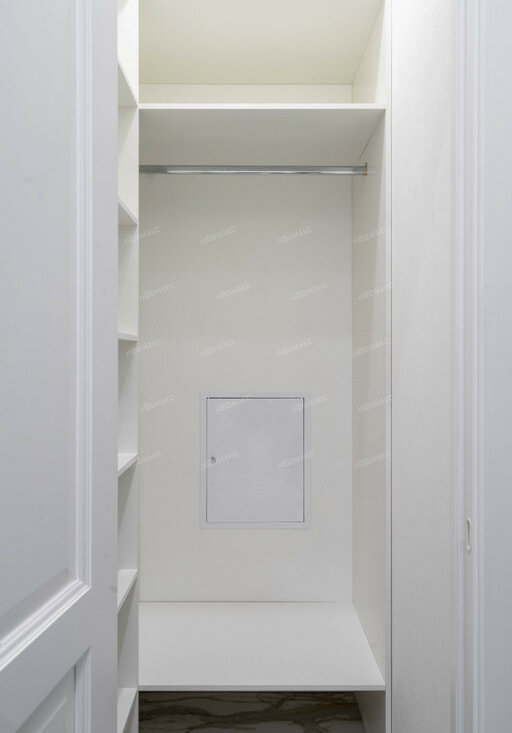 Есть небольшая гардеробная комната, также установлен большой шкаф в спальне.