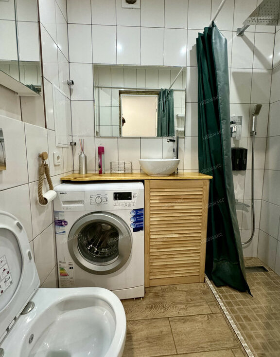 Совмещённый санузел со стиральной машиной — никаких походов в прачечную.