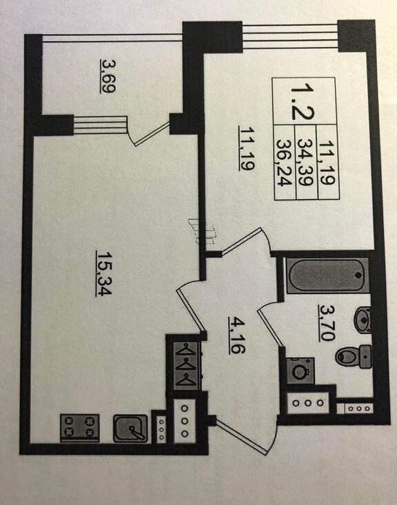 1-комнатная квартира: Санкт-Петербург, Торфяная дорога, 15к3 (36 м²)