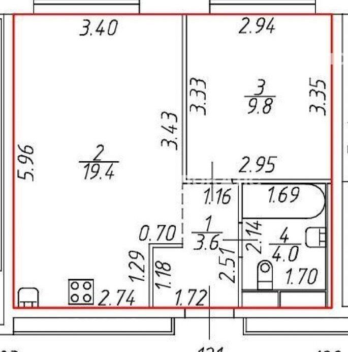 1-комнатная квартира: Санкт-Петербург, Черниговская улица, 17 (34.1 м²)