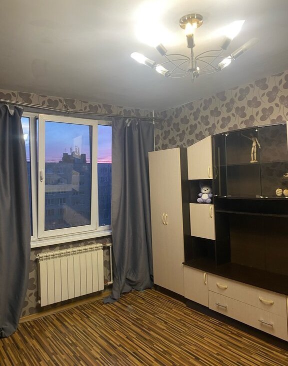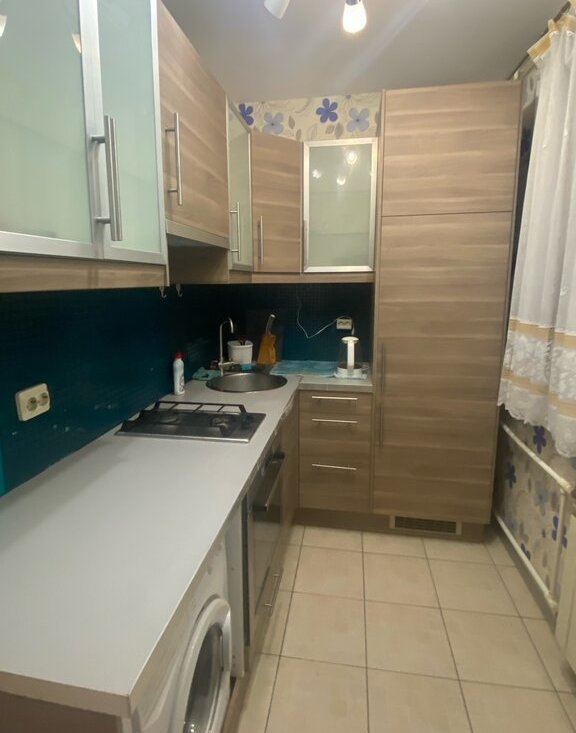 В квартире мебель и техника в хорошем состоянии. Есть Холодильник Bosch, стиральная машина. Встроенная кухня. Имеется плита, духовка, микроволновка. В комнате 2 шкафчика, стенка, комод, кровать.
