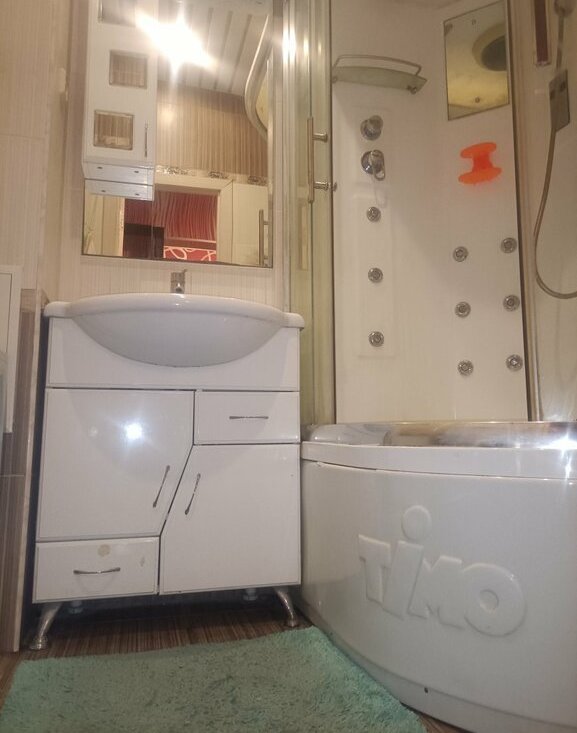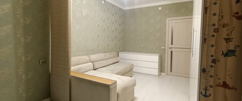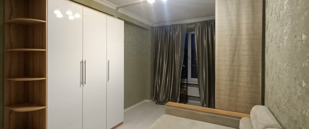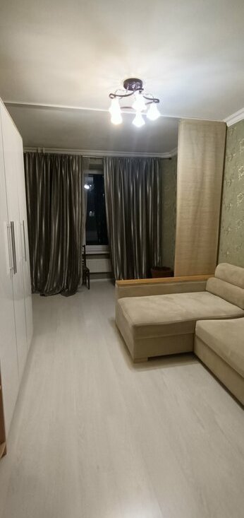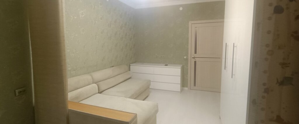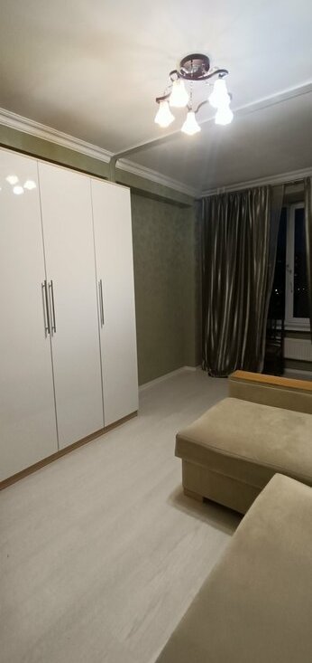 В квартире выполнен евро ремонт. Просторная гостиная с большим угловым диваном и вместительными шкафами. Из мебели также имеются удобные шкафы и гардеробная.