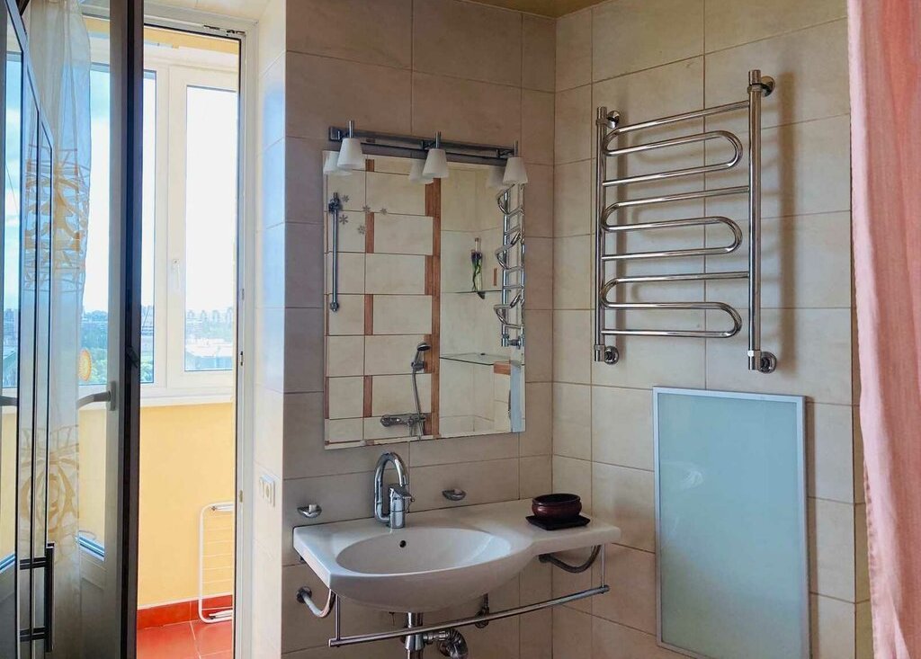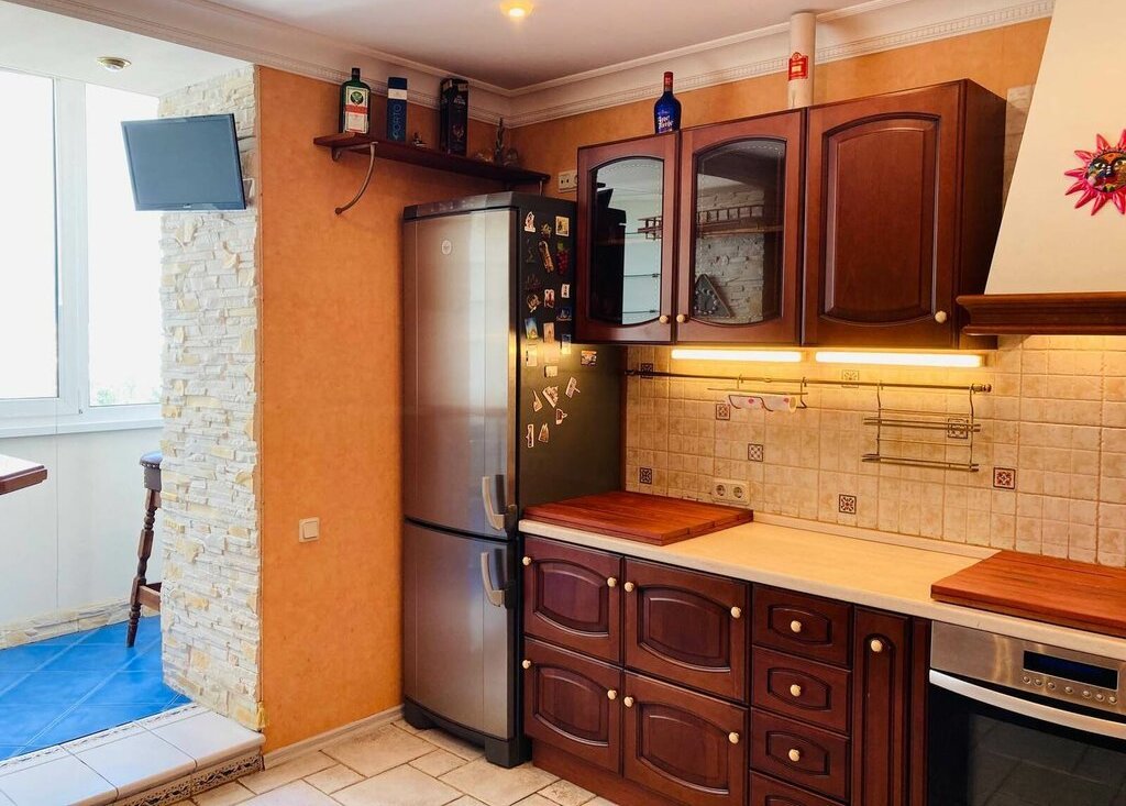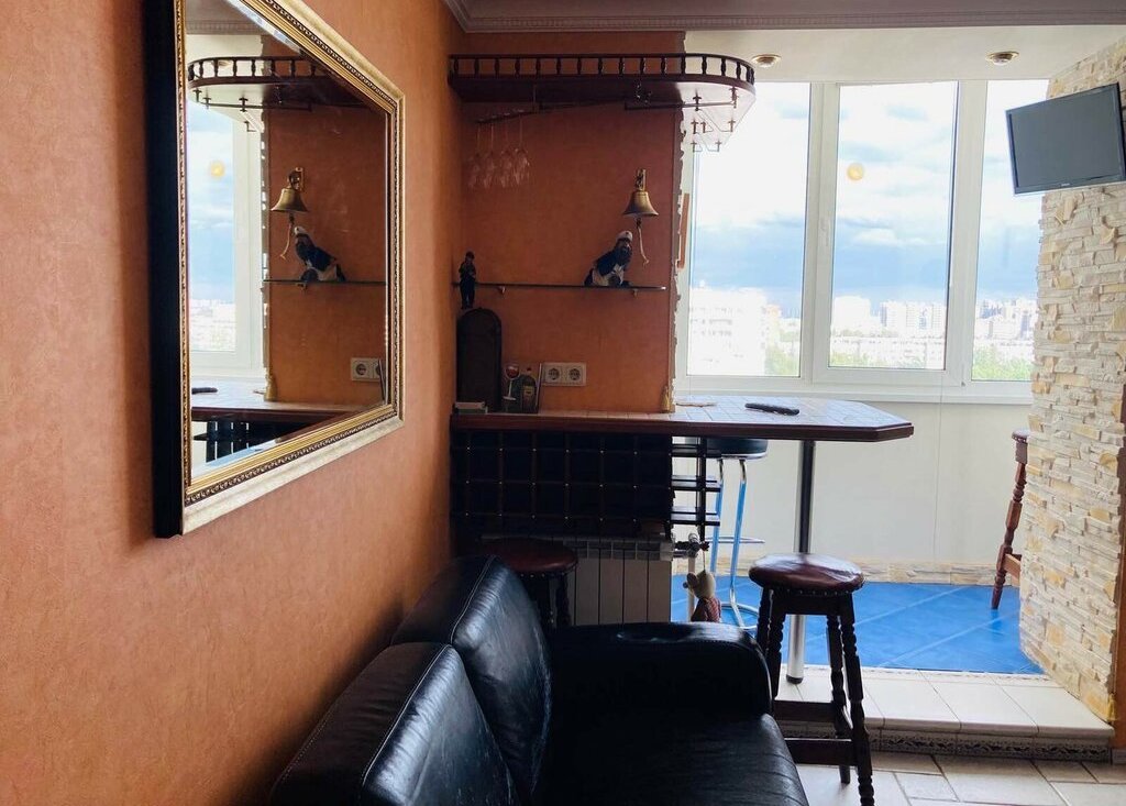 Уютная однокомнатная квартира большой площади с уникальной планировкой. В квартире есть всё необходимое для комфортного проживания. Качественная мебель и бытовая техника. Утеплённый балкон является продолжением жилого пространства квартиры, поэтому фактическая площадь почти 60 квадратных метров. На балконе оборудован рабочий кабинет. Удобно организованная и продуманная до мелочей обстановка позволит разместиться семье из четырёх человек. Большое количество мест для хранения одежды и личных вещей является преимуществом квартиры. А изюминкой является ванная комната с балконом, на котором оборудован хоз.блок.