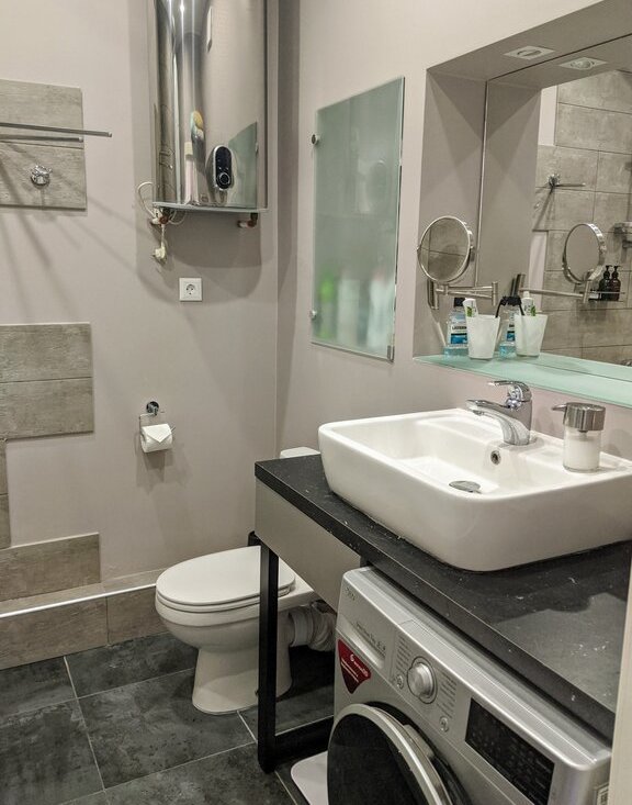 Вся мебель и техника (кондиционер, холодильник, стиральная машина, водонагреватель) остаются новым хозяевам.