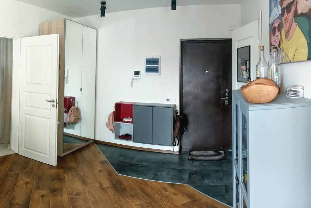 Продается уютная евродвушка площадью 44,6 квадратных метров (+5 кв балкон) с дизайнерским ремонтом и просторной кухней-гостиной. Она находится на 13-м этаже 17-этажного монолитного дома, построенного в 2016 году. Высота потолков составляет 2,8 метра, что добавляет простора и света.