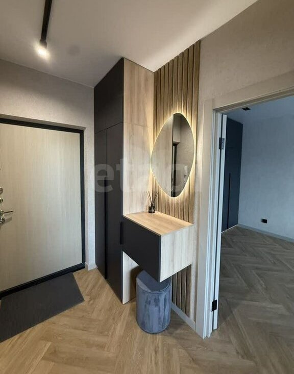 • Просторная прихожая с вместительным шкафом, зеркалом с подсветкой и пуфиком для удобства.